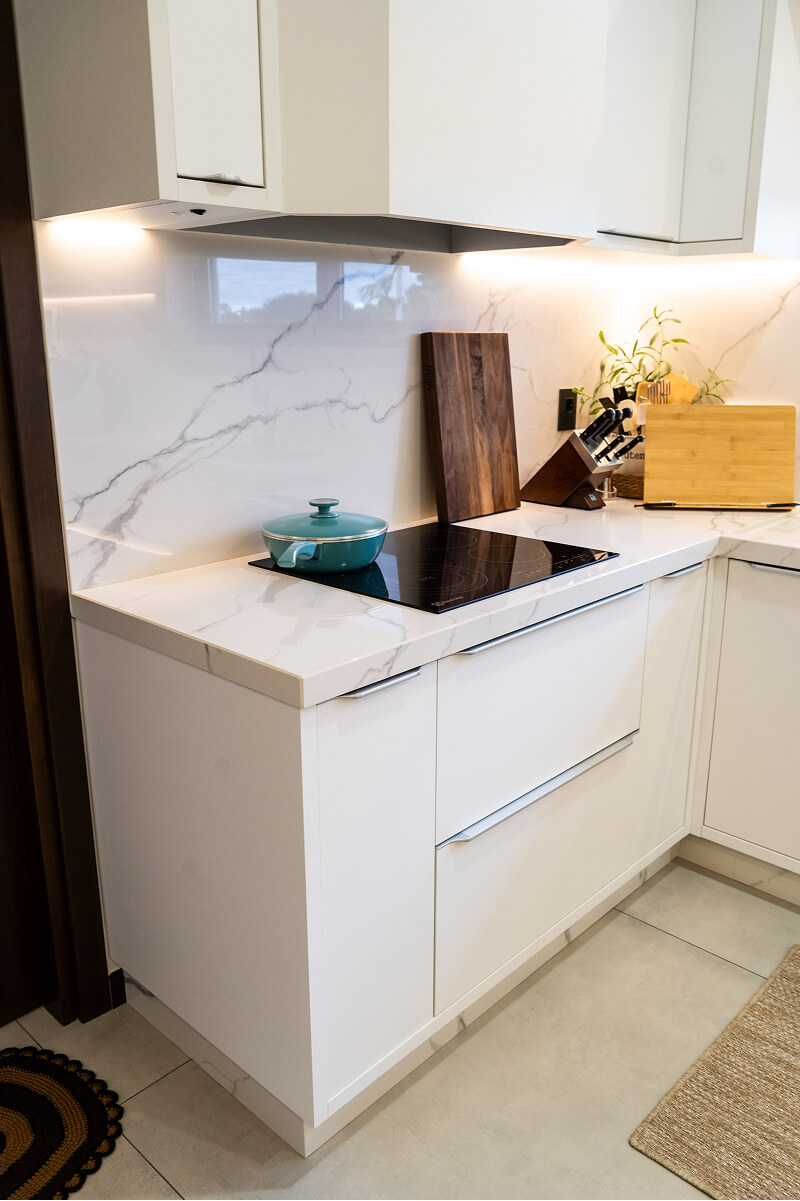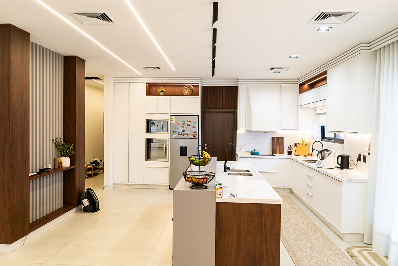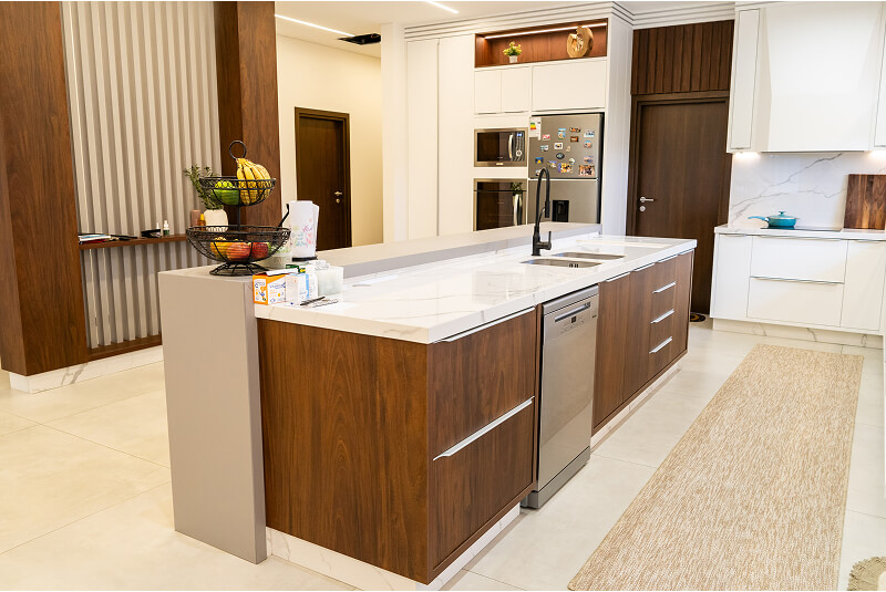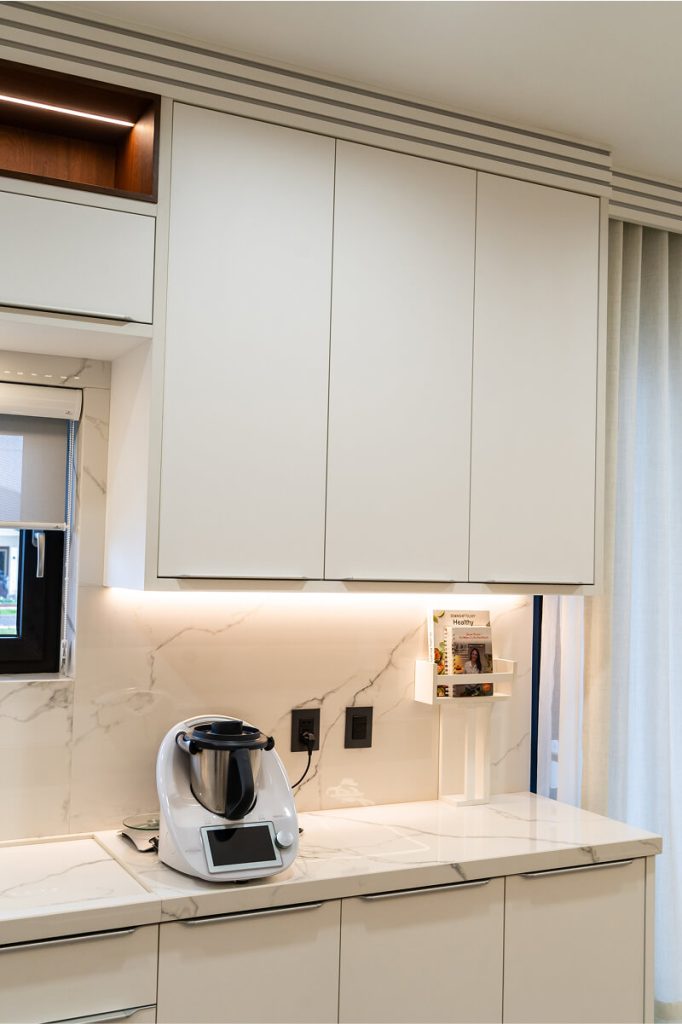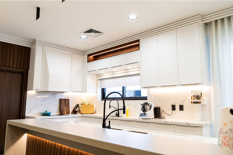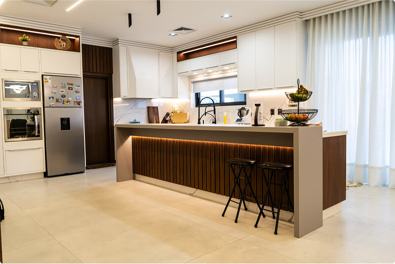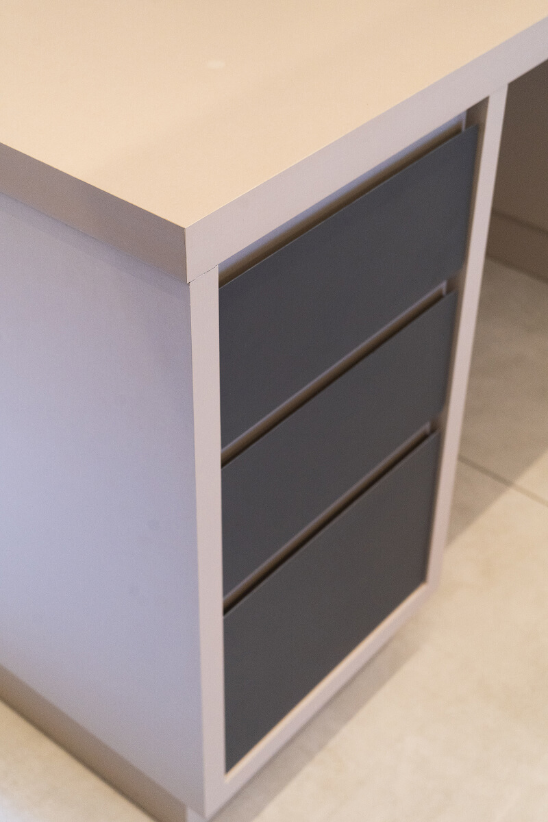 Trabajamos exclusivamente con materiales de alto nivel como MDF HDR, MDF estándar, madera maciza, herrajes invisibles con freno, cintas de borde de 1 mm y piedras naturales. Todo pensado para garantizar durabilidad, estética y funcionalidad.